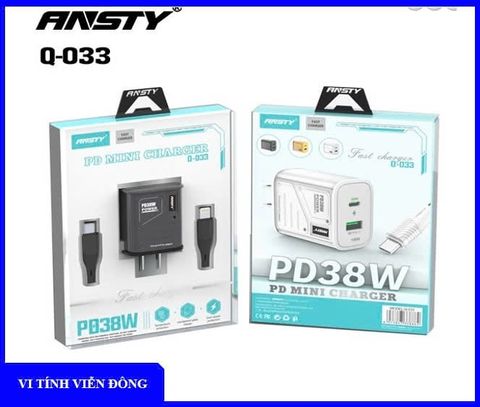 Bộ sạc nhanh Iphone Ansty Q - 033 PL2 TypeC -> Lightning 38w 1m