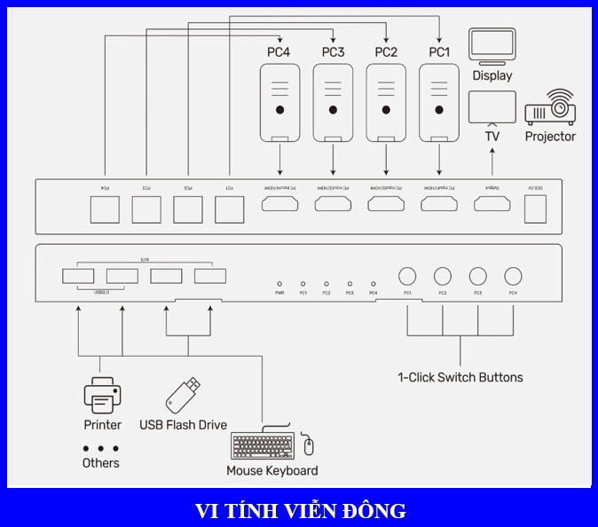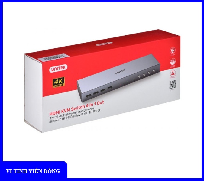 Bộ swithch KVM HDMI 4 vào 1 ra + 4 USB 4K V306A Unitek